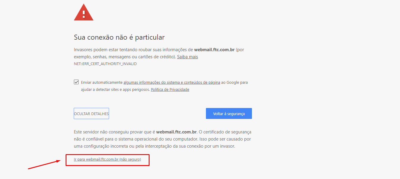 2.3- Clique em "ir para webmail (não seguro)"